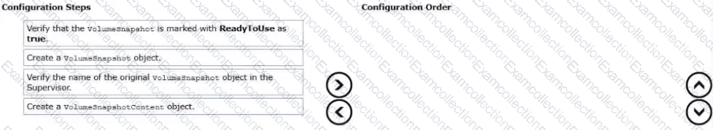 Drag and drop the four configuration tasks Into the correct order from "Configuration Steps" on the left and place them into the "Configuration Order" on the right. (Choose four.)