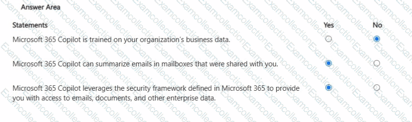For each of the following statements, select Yes if the statement is true. Otherwise, select No.