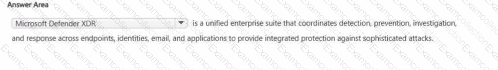The correct answer is Microsoft Defender XDR . Microsoft Learn defines Microsoft Defender XDR as a unified pre- and post-breach enterprise defense suite that natively coordinates detection, prevention, investigation, and response across endpoints, identities, email, and applications to provide integrated protection against sophisticated attacks. That wording matches the sentence in the question almost exactly, which makes this the clearly correct choice.