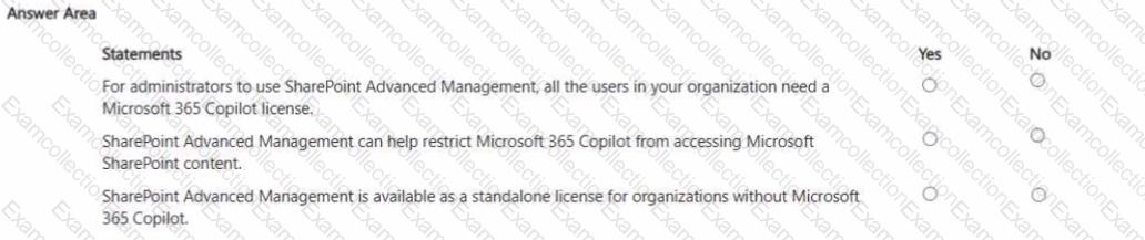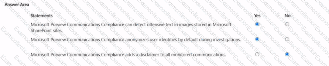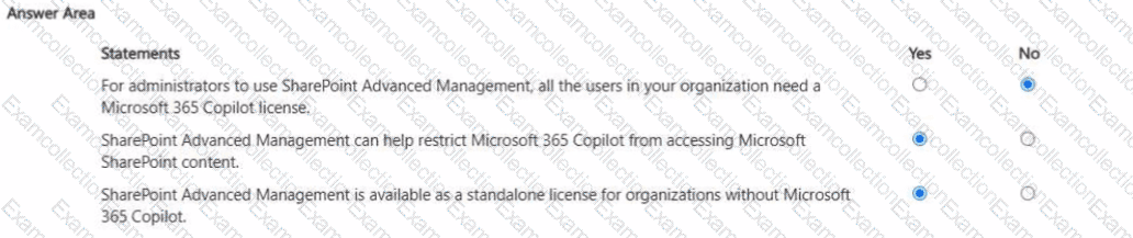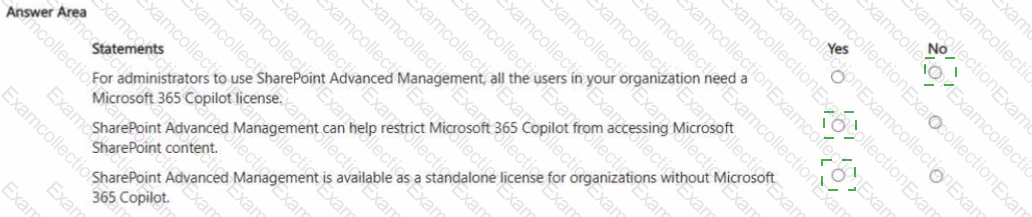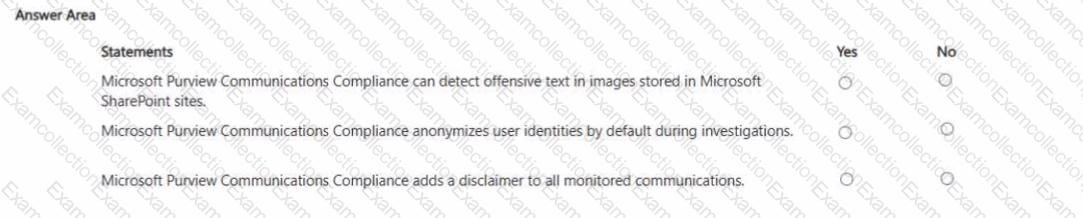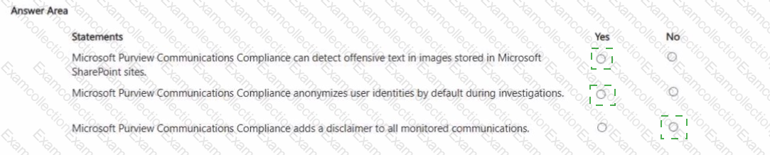 For each of the following statements, select Yes if the statement is true. Otherwise, select No.