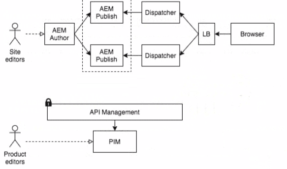 A customer with an existing AEM implementation wants to enrich product pages with technical data coming from their PIM system. The PIM system sits behind an API Management solution that publicly exposes the PIM API's as RESTful web services with basic authentication as the security mechanism. Data consistency with the PIM and secure access to the APIs are key elements of the integration.