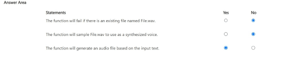 For each of the following statements, select Yes if the statement is true. Otherwise, select No.
