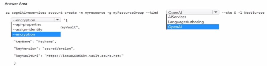 You need to create a new resource that will generate fictional stories in response to user prompts. The solution must ensure that the resource uses a customer-managed key to protect data.