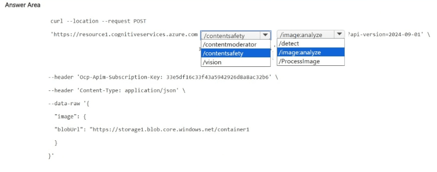 You have an Azure subscription that contains an Azure Al Content Safety resource named Resource1 and a storage account named storage1.