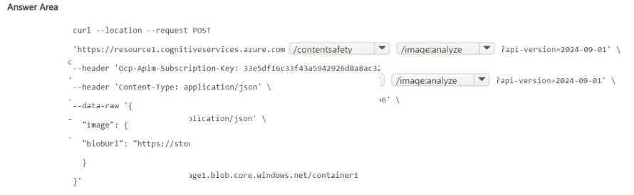 How should you complete the cURL command? To answer, select the appropriate options in the answer area.