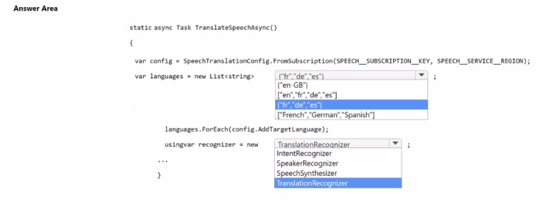 How should you complete the code? To answer, select the appropriate options in the answer area.