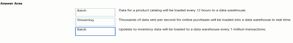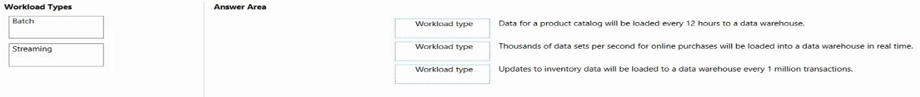 To answer, drag the appropriate workload type from the column on the left to its scenario on the right. Each workload type may he used once, more than once, or not at all.