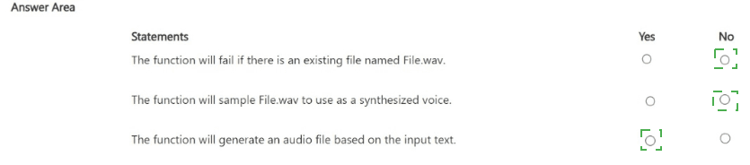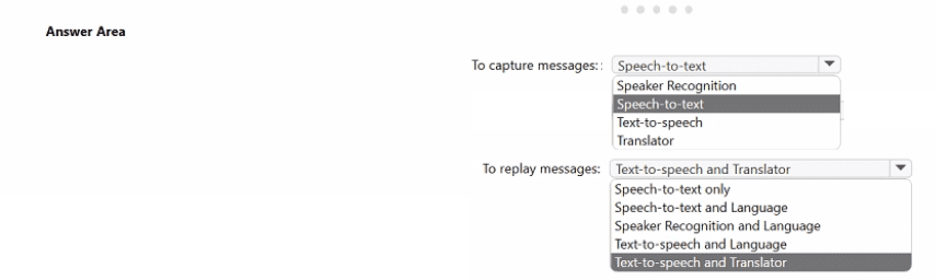 Which Azure Cognitive Services should you use? To answer, select the appropriate options in the answer area. NOTE: Each correct selection is worth one point.
