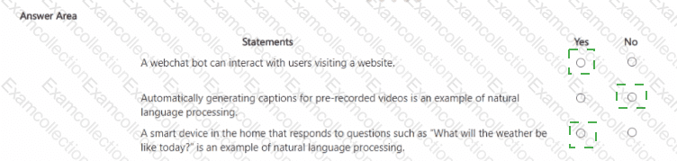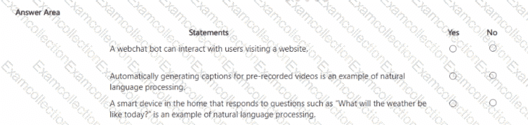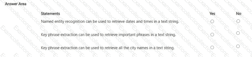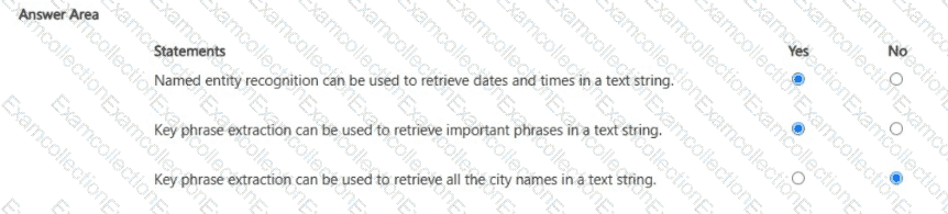 For each of The following statements, select Yes If the statement is true. Otherwise, select No.