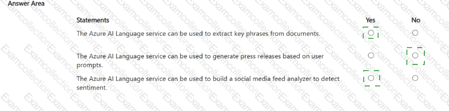 For each of the following statements, select Yes if the statement is true. Otherwise, select No.
