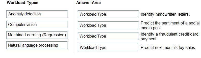 To answer, drag the appropriate workload type from the column on the left to its scenario on the right. Each workload type may be used once, more than once, or not at all.