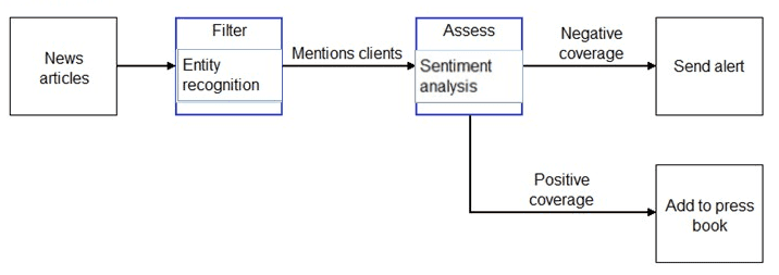 You need to scan the news for articles about your customers and alert employees when there is a negative article. Positive articles must be added to a press book.