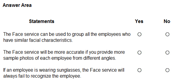 For each of the following statements select Yes if the statement is true. Otherwise, select No.