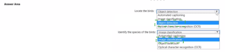 Which type of computer vision does each task use? To answer, select the appropriate options in the answer area.