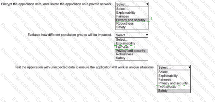 Which THREE of the following principles of responsible AI are most critical to this scenario? (Choose 3)