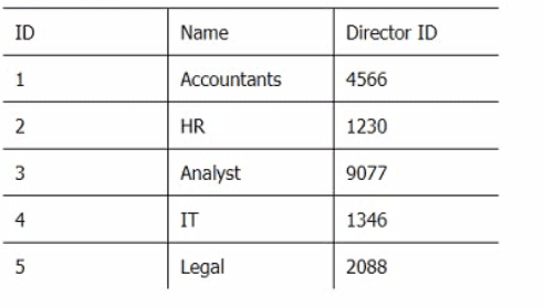 Below are three tables: Employees, Departments, and Directors.