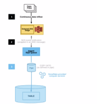 Step 2: An Amazon S3 event notification, published by SNS, informs Snowpipe — by way of Amazon Simple Queue Service (SQS) - that files are ready to load. Snowpipe copies the files into a queue.