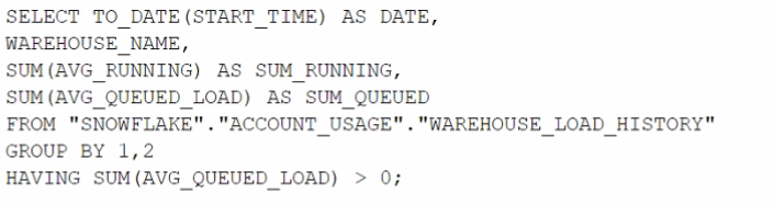Which query will identify the specific days and virtual warehouses that would benefit from a multi-cluster warehouse to improve the performance of a particular workload?
