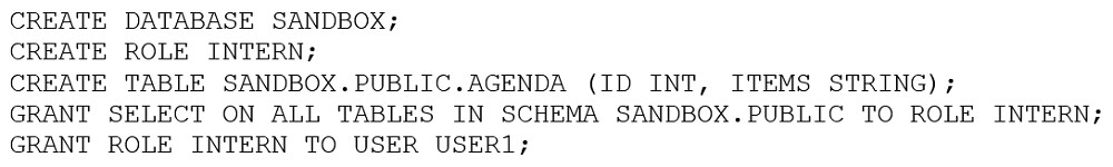 Which of the following commands does the Architect need to run for USER1 to find the tables using the Principle of Least Privilege? (Choose two.)