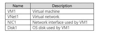 You have an Azure subscription that contains two resource groups named RG1 and RG2. RG1 contains the resources shown in the following table.