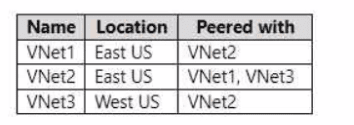 You have an Azure subscription that contains the virtual networks shown in the following table.