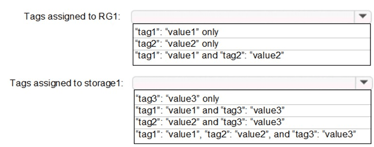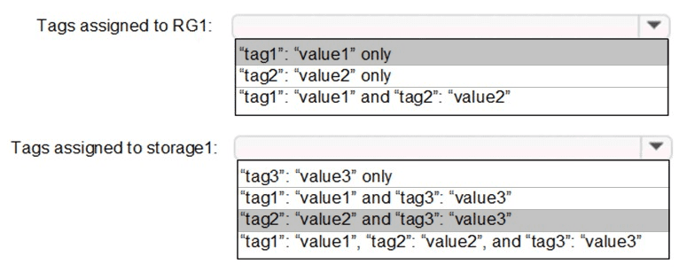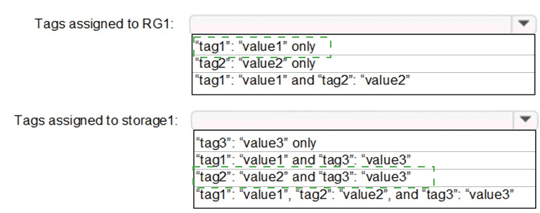 After Policy1 is assigned, you create a storage account that has the following configurations:
