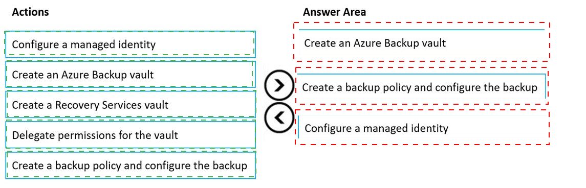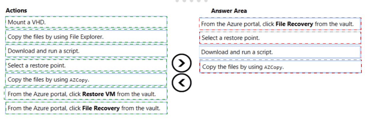 Which four actions should you perform in sequence? To answer, move the appropriate actions from the list of actions to the answer area and arrange them in the correct order.