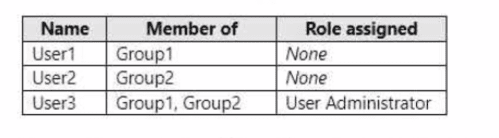 You have a Microsoft Entra tenant named contoso.onmicrosoft.com that contains the users shown in the following table.