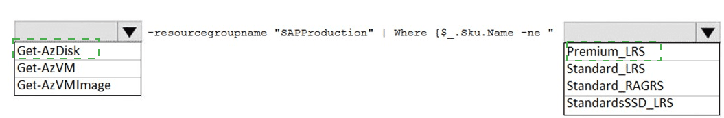 Before putting the SAP environment on Azure into production, which command should you run to ensure that the virtual machine disks meet the business requirements? To answer, select the appropriate options in the answer area.