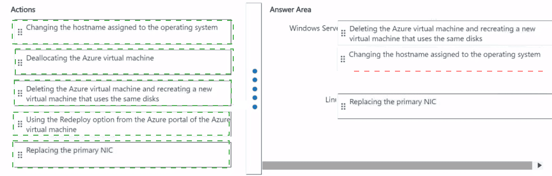 What will invalidate the existing NetWeaver ABAP licenses for each operating system once the servers are migrated to Azure? To answer, drag the appropriate actions to the correct operating systems. Each action may be used once, more than once, or not at all. You may need to drag the split bar between panes or scroll to view content