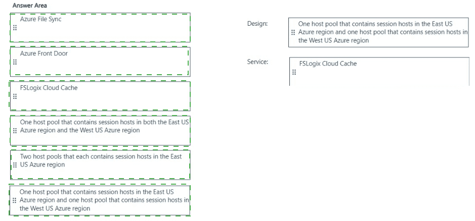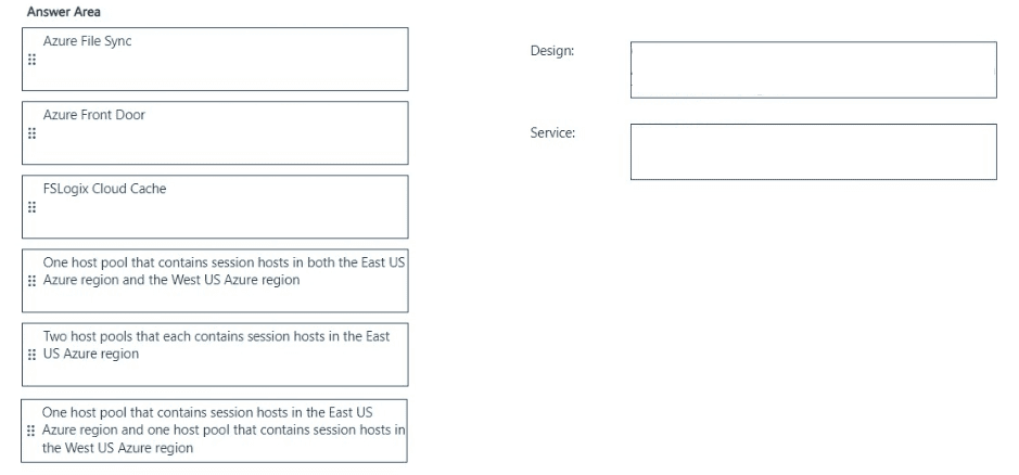 Which host pool design and which service should you configure to meet the disaster recovery requirements? To answer, drag the appropriate solution to the correct requirements. Each solution may be used once, more than once, or not at all. You may need to drag the split bar between panes or scroll to view content