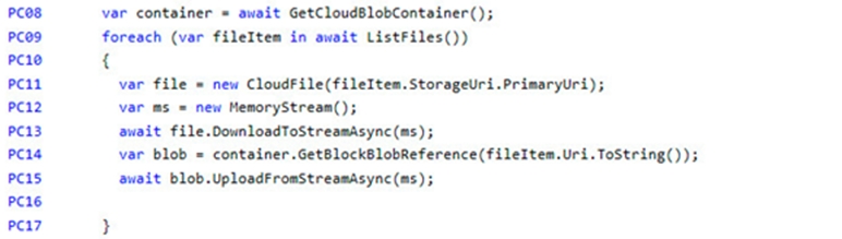 How should you complete the code that you will add at line PC26? To answer, select the appropriate options in the answer area.
