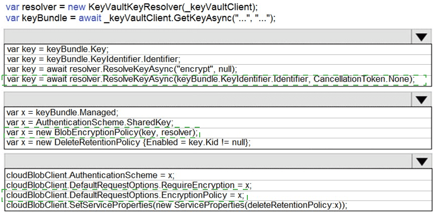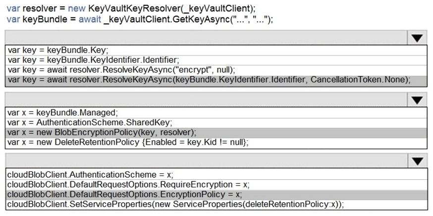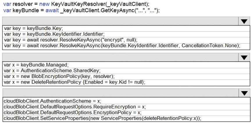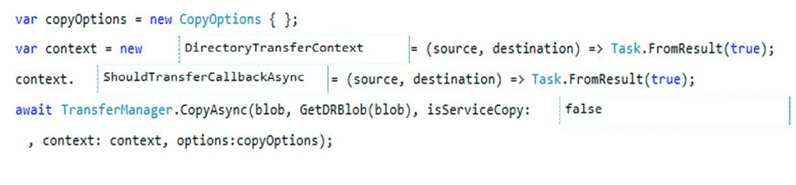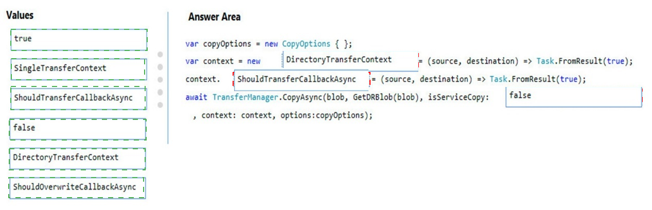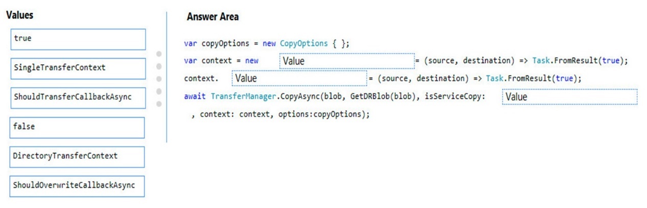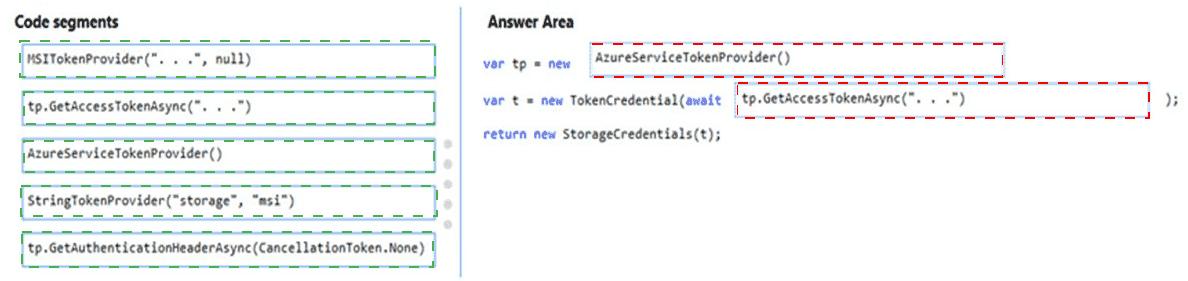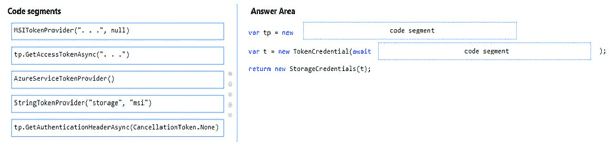 How should you complete the code? To answer, drag the appropriate code segments to the correct locations. Each code segment may be used once, more than once, or not at all. You may need to drag the split bar between panes or scroll to view content.