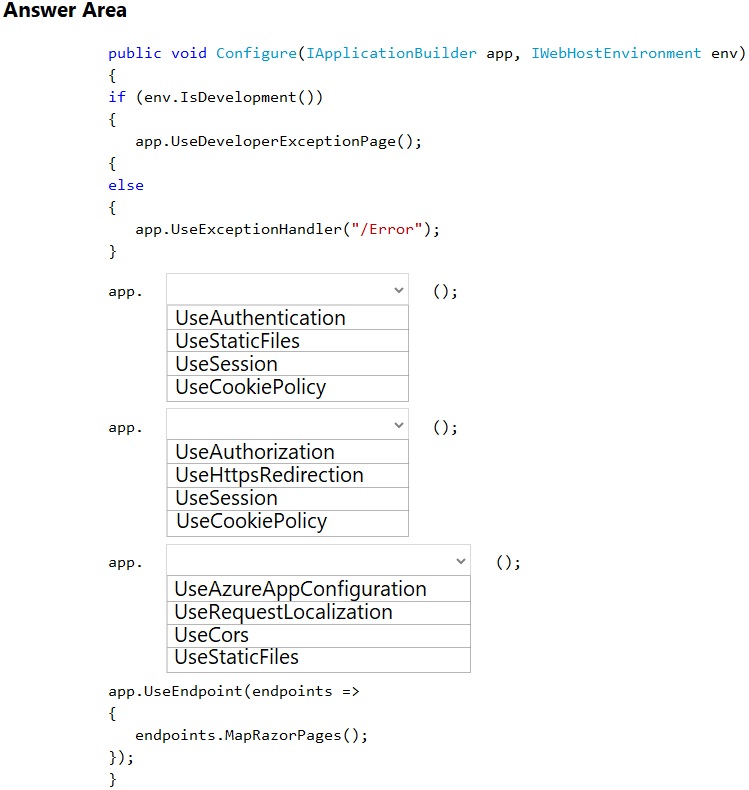 How should you complete the code segment? To answer, select the appropriate options in the answer area.