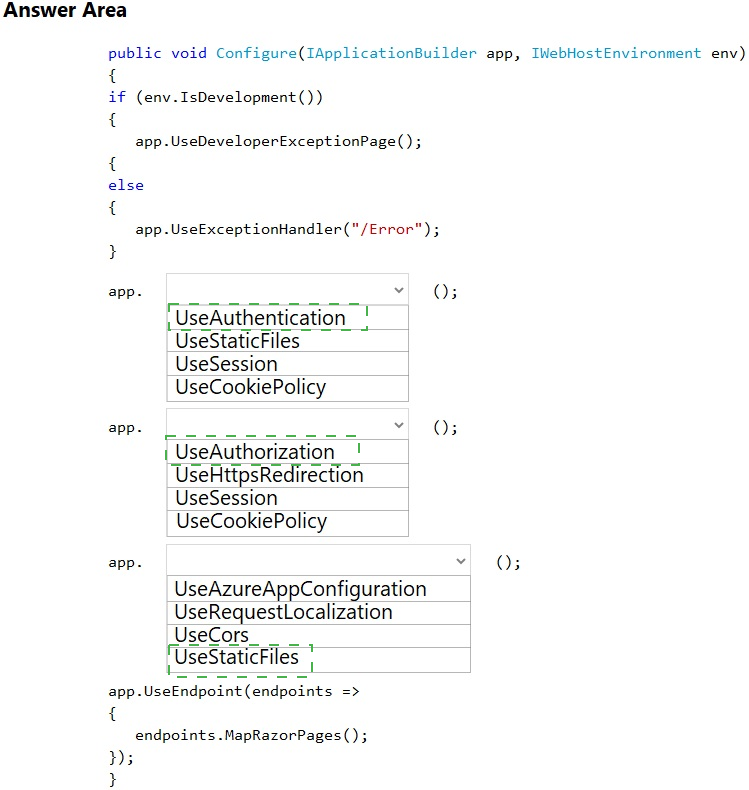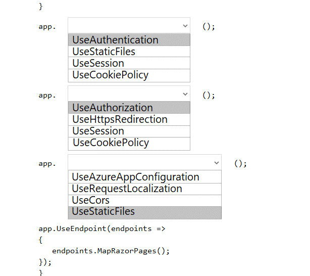 How should you complete the code? To answer, select the appropriate options in the answer area.