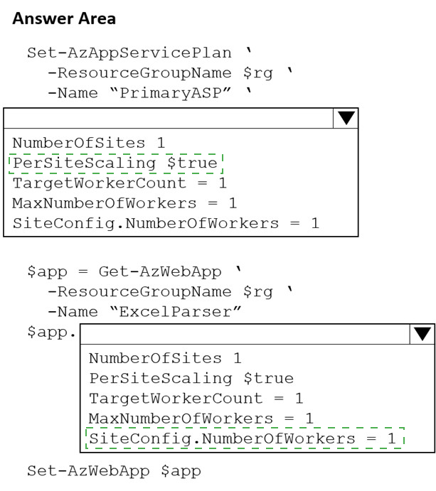 You are developing a new web service by using a web app named ExcelParser. The web app contains a third-party library for processing Microsoft Excel files. The license for the third-party library stipulates that you can only run a single instance of the library.