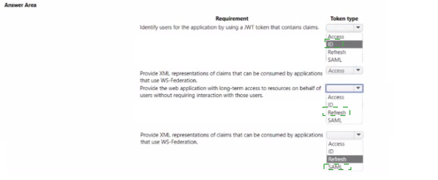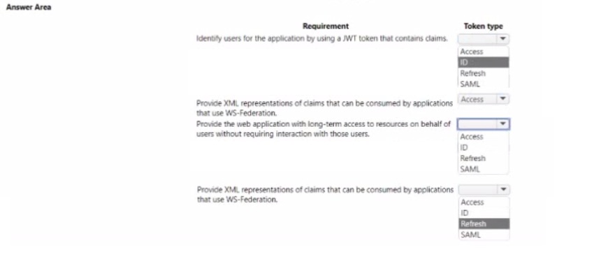 Which token type should use? To answer, select the appropriate options in the answer area.