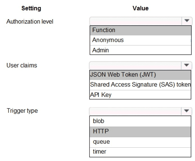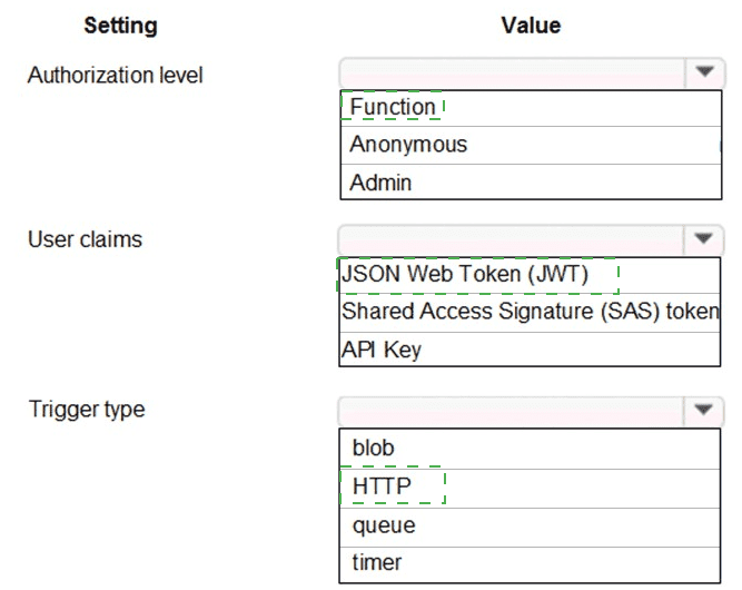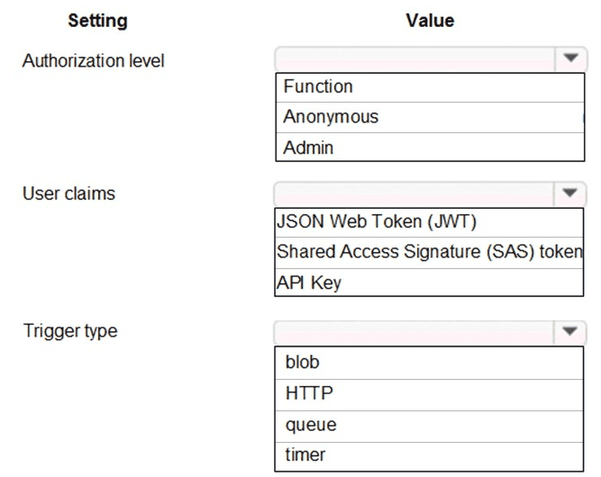 How should you configure the app? To answer, select the appropriate options in the answer area.