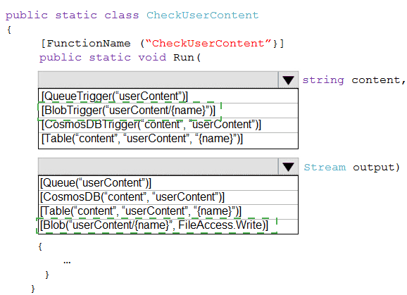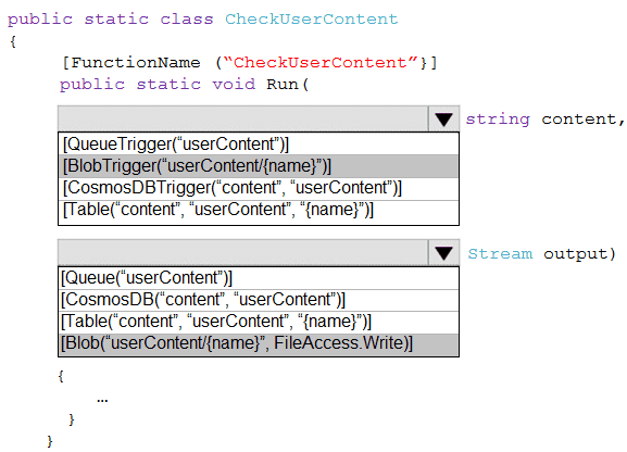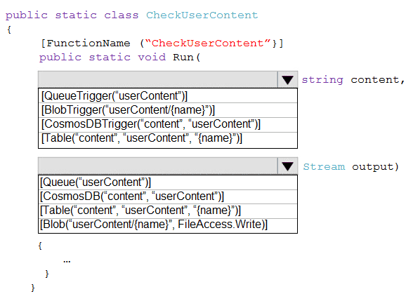 How should you complete the code? To answer, select the appropriate options in the answer area.