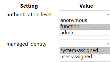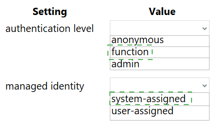 Which values should you use? To answer, select the appropriate options in the answer area.