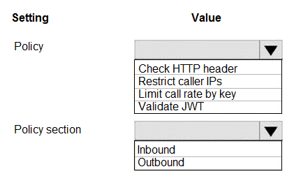 Which policy values should you use? To answer, select the appropriate options in the answer area.