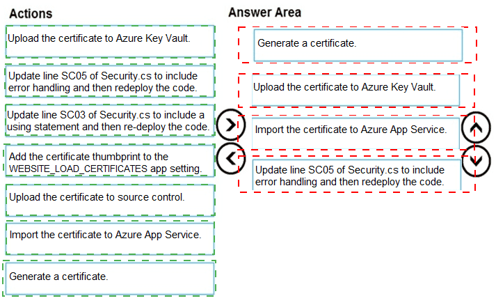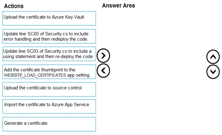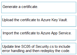 Which four actions should you recommend be performed in sequence? To answer, move the appropriate actions from the list of actions to the answer area and arrange them in the correct order.