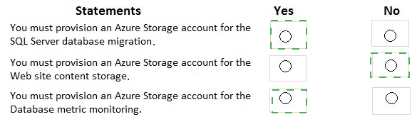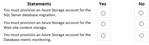 You are evaluating the components of the migration to Azure that require you to provision an Azure Storage account.