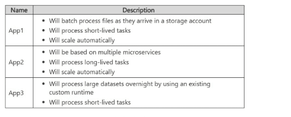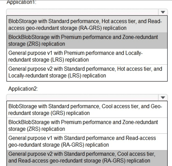 • Storage for Application2 must provide the lowest possible storage costs per GB.