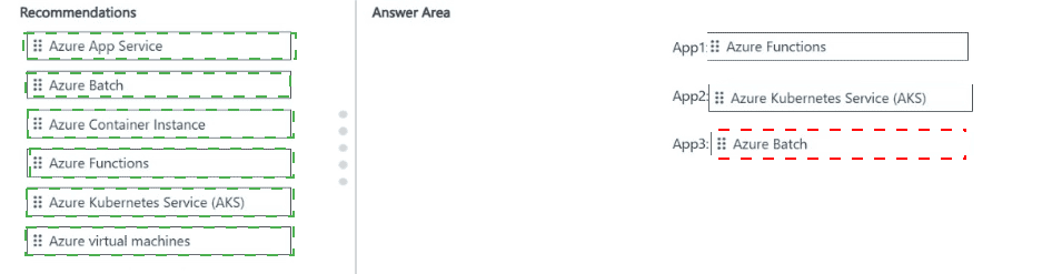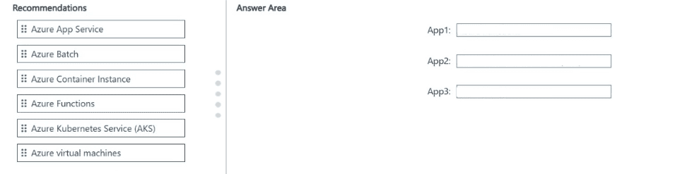 What should you include in the recommendation for each app? To answer, drag the appropriate recommendations to the correct apps. Each recommendation may be used once, more than once, or not at all. You may need to drag the split bar between panes or scroll to view content.