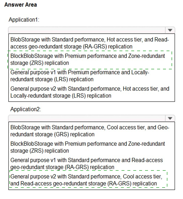 You need to recommend an Azure Storage Account configuration for two applications named Application1 and Applications. The configuration must meet the following requirements: