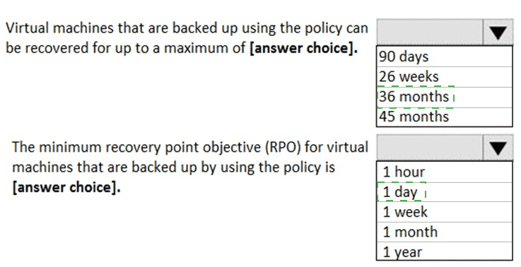 What should you recommend ? To answer, select the appropriate options in the answer area NOTE: Each correct selection is worth one point
