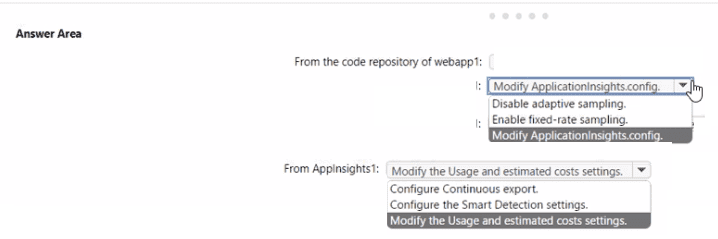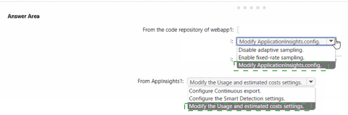 You need to modify the sampling rate of the telemetry data processed by Applnsights1 without having to redeploy webapp1 after each modification.