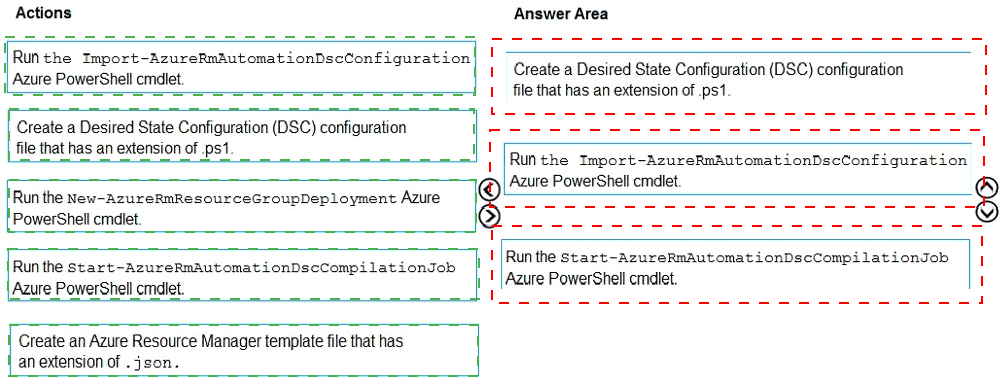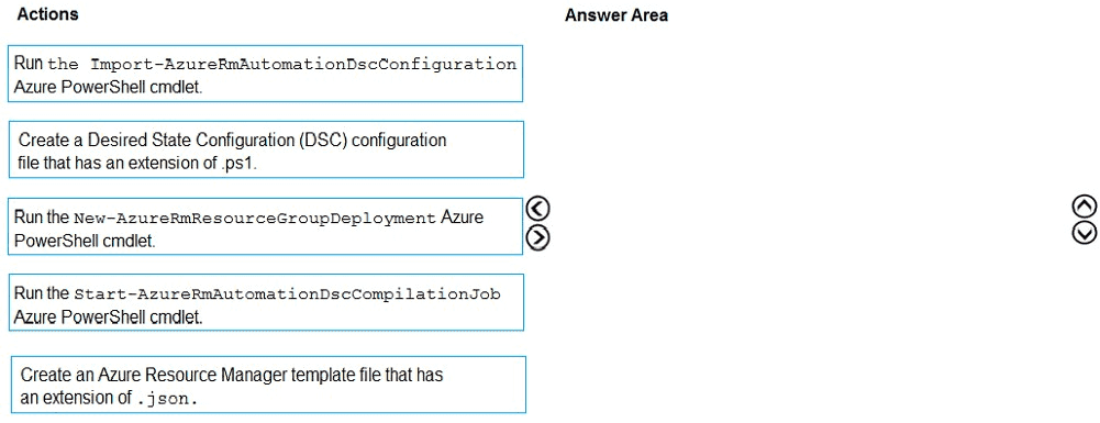 Which three actions should you perform in sequence? To answer, move the appropriate actions from the list ofactions to the answer area and arrange them in the correct order.