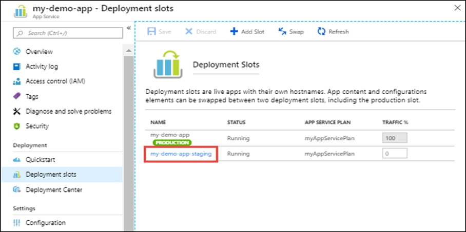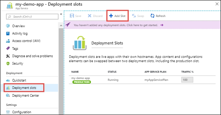 You need to ensure that an Azure web app named az400-9940427-main supports rolling upgrades. The solution must ensure that only 10 percent of users who connect to az400-9940427-main use update versions of the app.